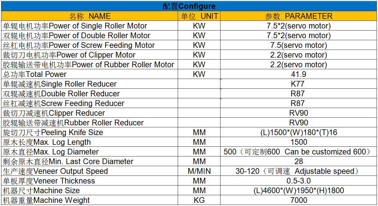所有电机均采用全伺服电机,旋切速度稳定,保证了高速旋切精度,单板质量高。